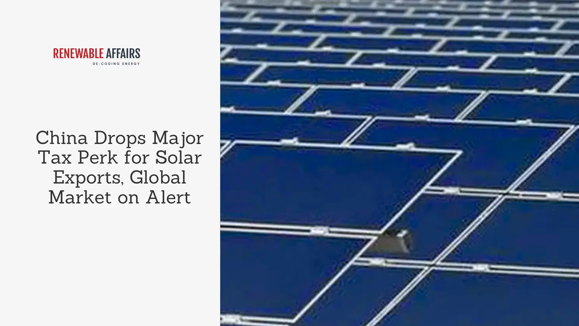 China has announced that it will cancel value-added tax (VAT) export rebates for solar photovoltaic (PV) products starting April 1, 2026, marking a major shift in policy for one of the world’s largest solar exporters.